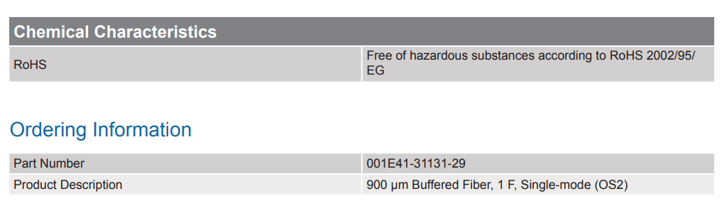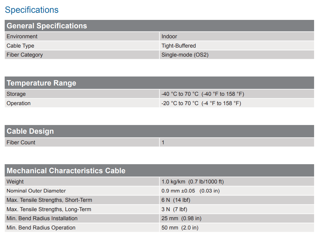 1-FIBER 900 UM BUFFERED FIBER CABLE NO FLAME RATING SMF-28E+®