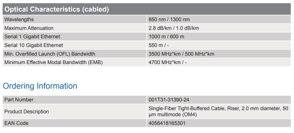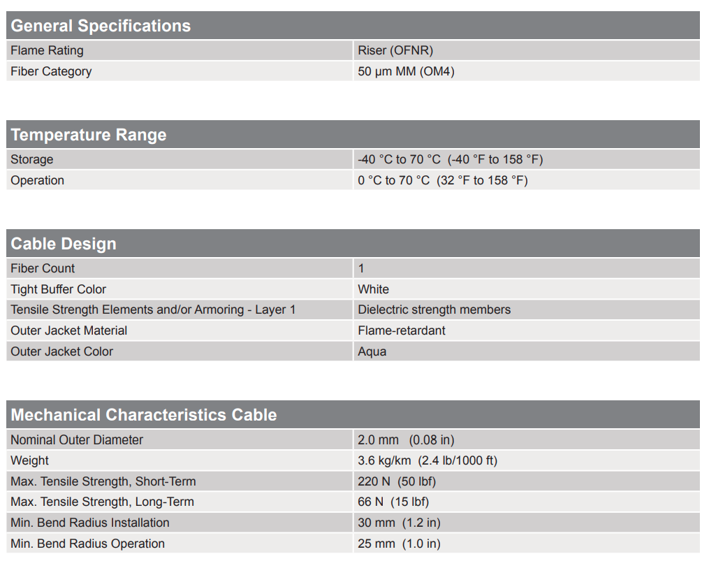 1-FIBER SINGLE-FIBER CABLE RISER 2.0 MM OM4