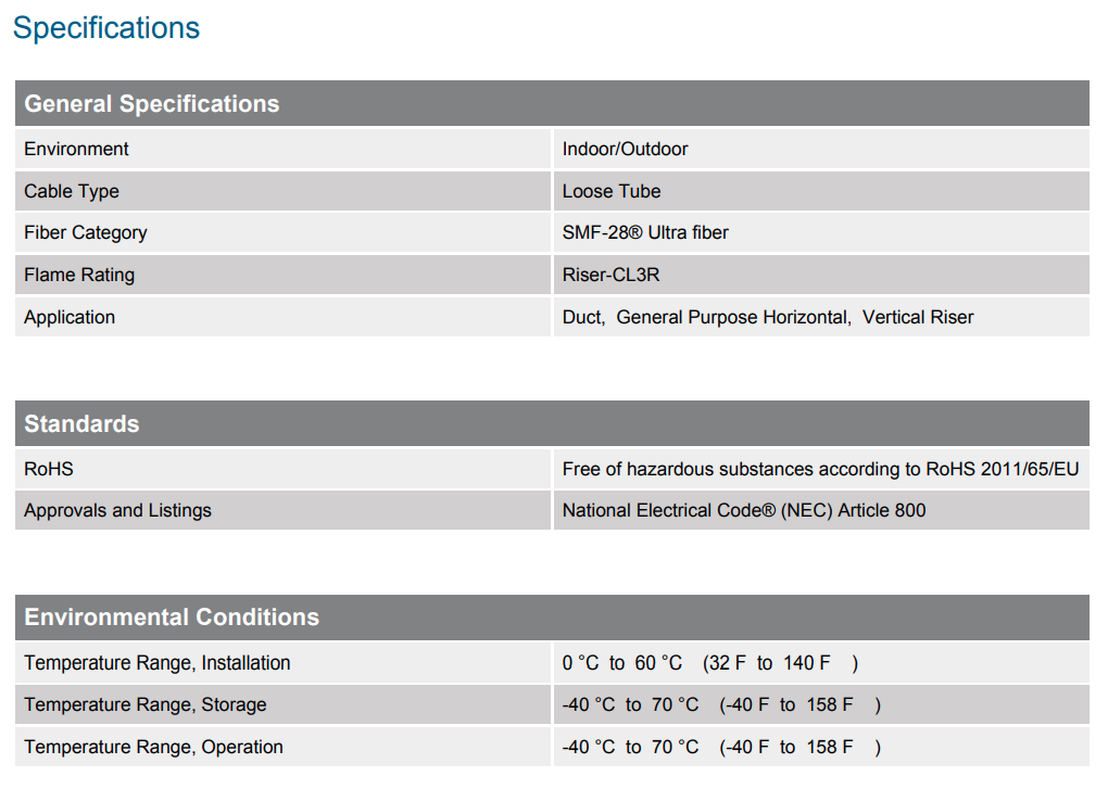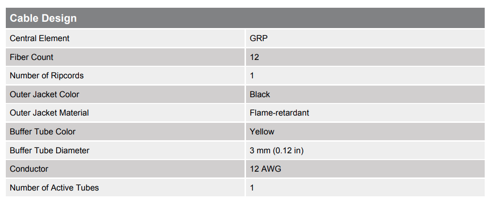 12-Fiber ActiFi® Composite Cable 4X12 AWG Class 3 Limited Power300V-rated Conductors Indoor/Outdoor Riser SMF-28® Ultra