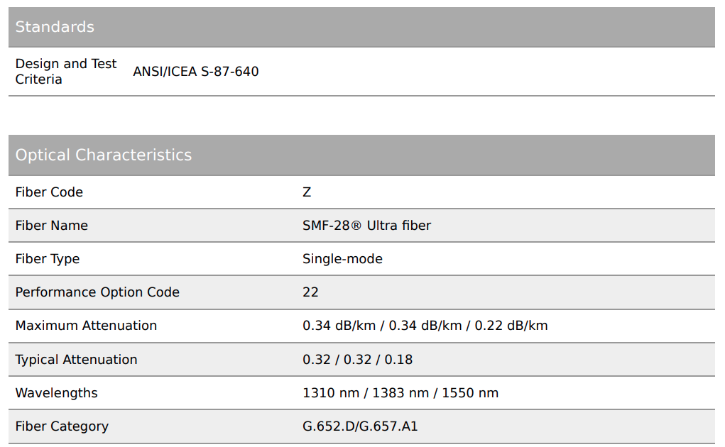 12 F, SMF-28® Ultra fiber, Single-mode (OS2)
