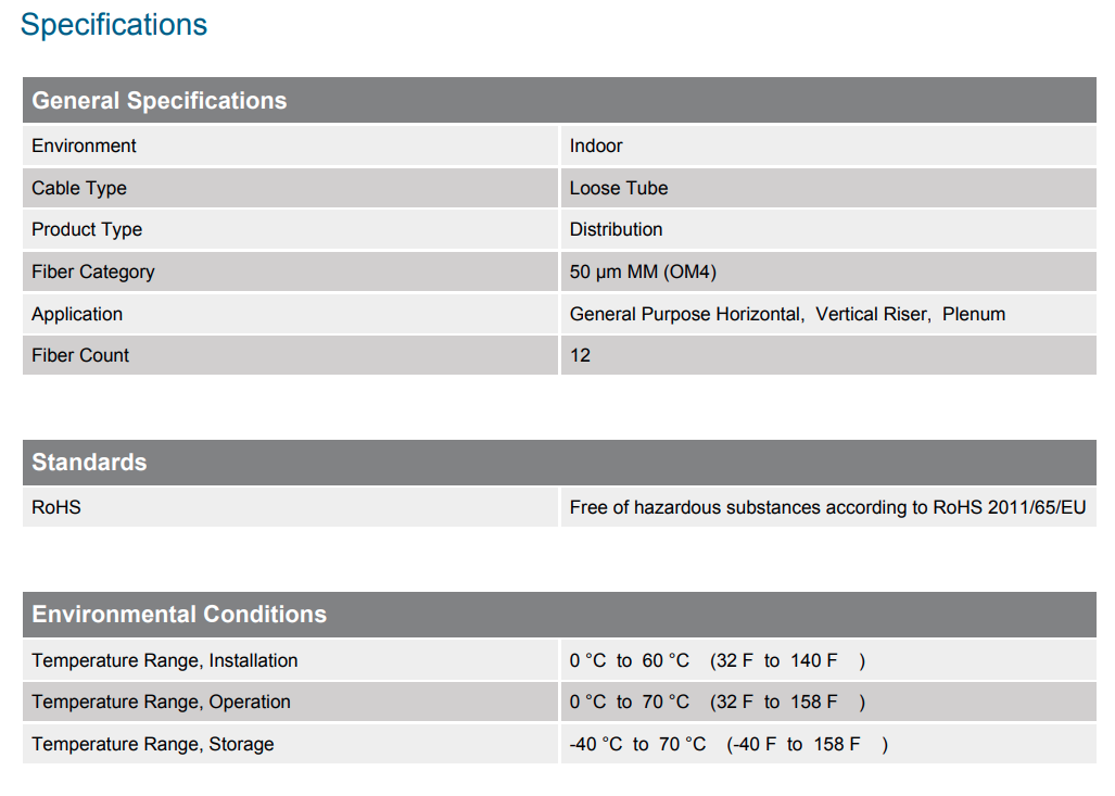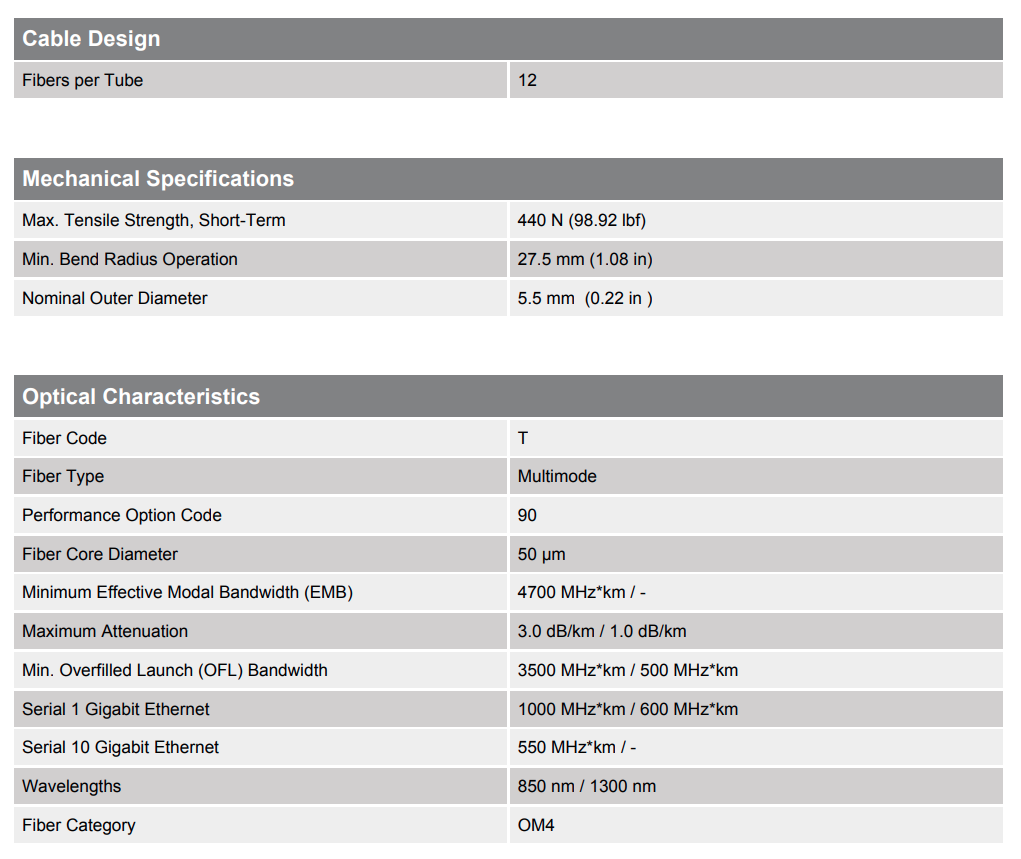 12-FIBER DISTRIBUTION CABLE MIC 250 2.0 OM4