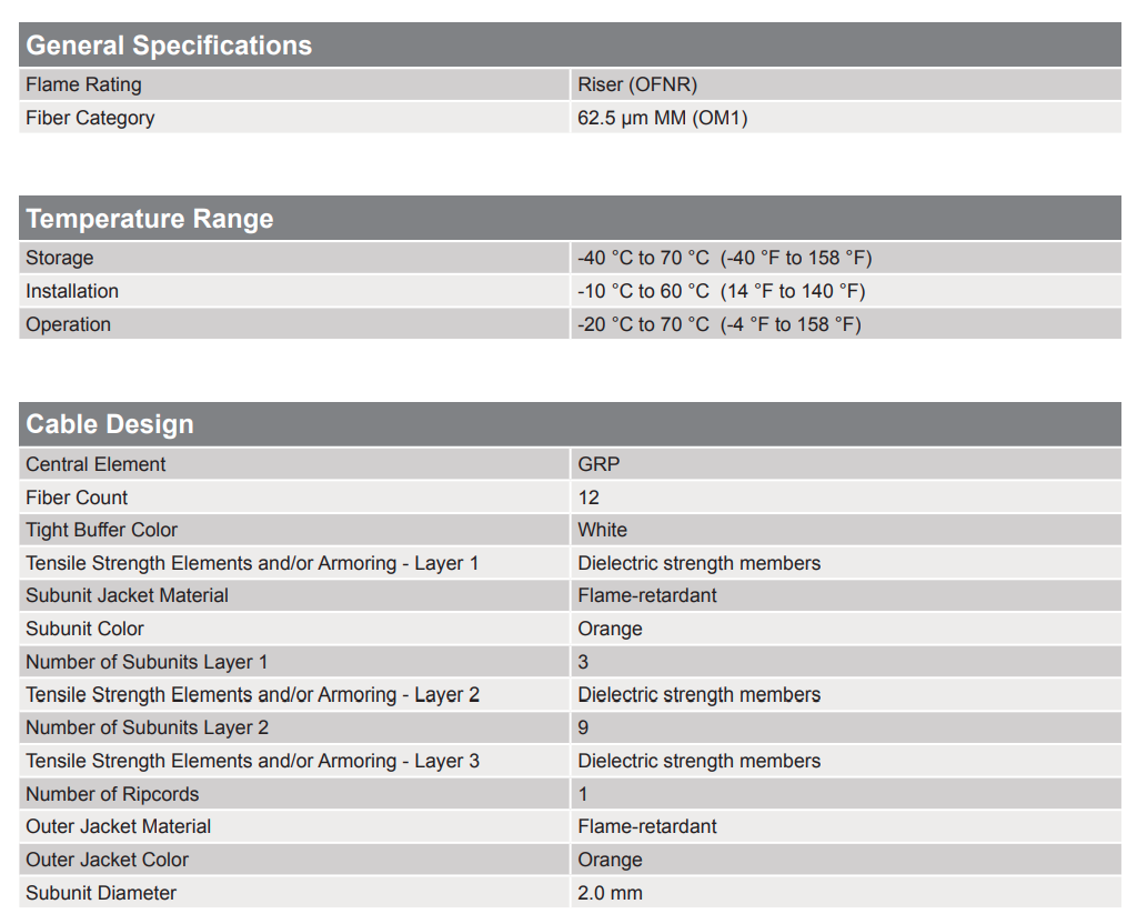 12-FIBER FAN-OUT CABLE RISER 2.0 MM OM1
