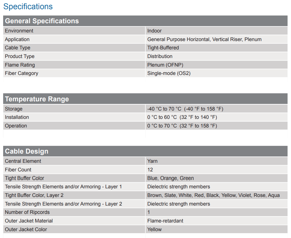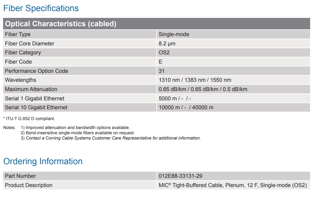 12-FIBER MIC® CABLE PLENUM SMF-28E+®