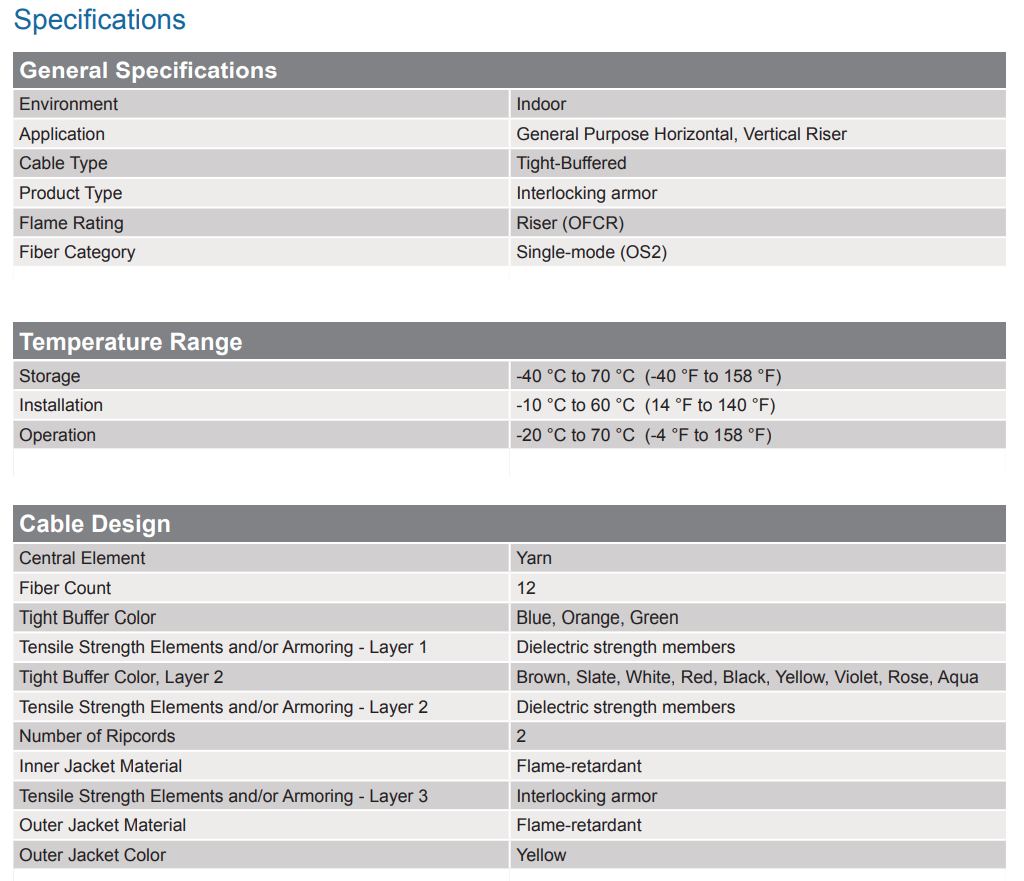 12-FIBER MIC® CABLE RISER SMF-28E+® INTERLOCKING ARMOR W/OUTER JKT