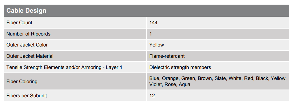 144-FIBER MIC® 250 DISTRIBUTION CABLE PLENUM SMF-28E+®