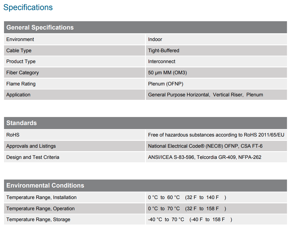 Corning DFX® 250 cables have two 250 μm fibers surrounded by aramid yarn strength members in a flexible flame-retardant jacket. These cables meet the application requirements of the National Electrical Code® (NEC®) Article 770 and are OFNP and FT-6 listed. DFX 250 cables are ideal for interconnect applications.