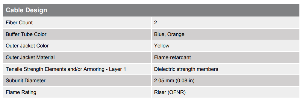 2-FIBER DFX® 250 CABLE RISER SMF-28® ULTRA