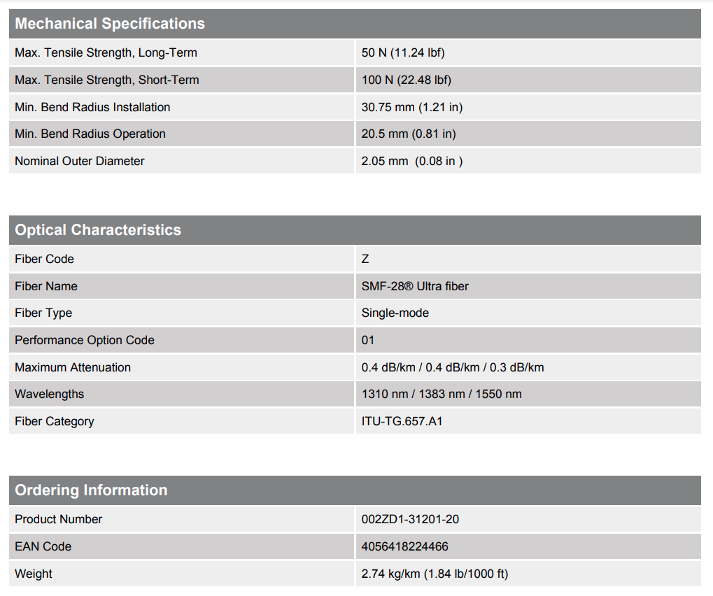 SMF-28® Ultra fiber, Single-mode (OS2)