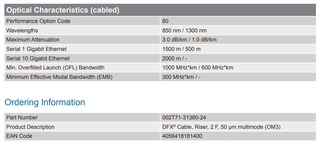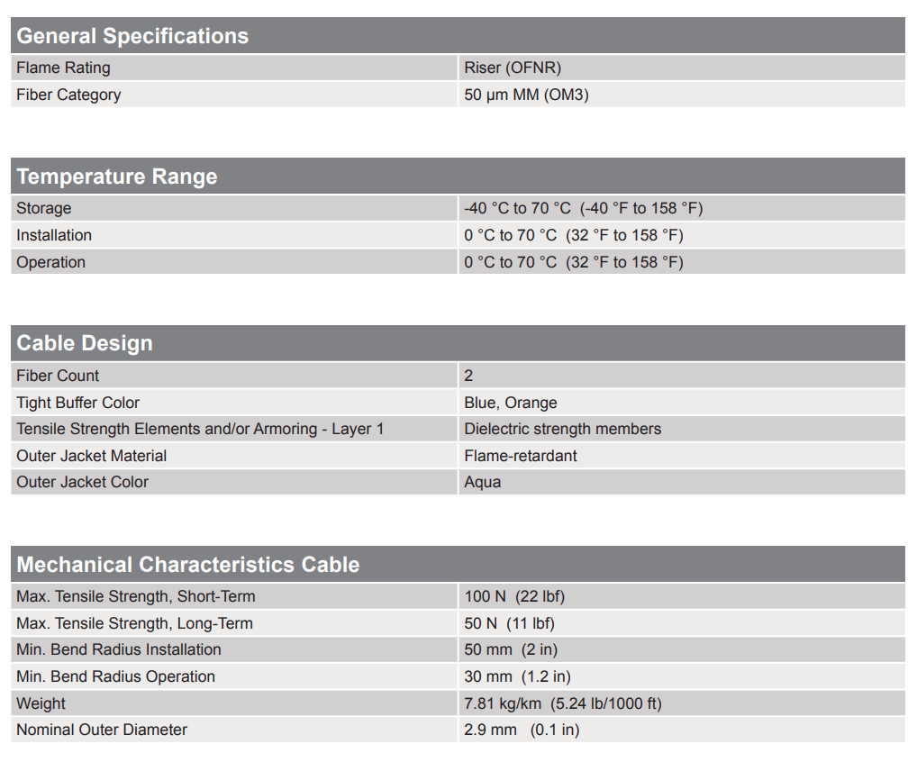 Corning DFX® cables have two 900 μm tight -buffered fibers surrounded by aramid yarn strength members in a flexible flame -retardant jacket. These cables meet the application requirements of the National Electrical Code (NEC) Article 770 and are OFNR and FT -4 listed. DFX cables are ideal for interconnect applications.