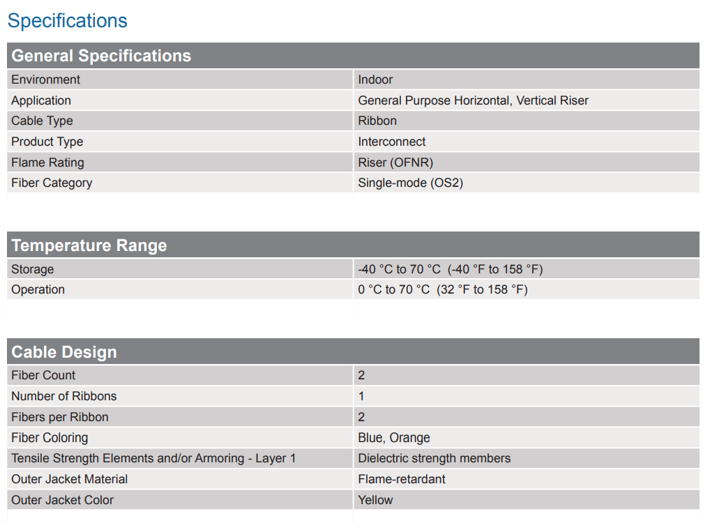 2-FIBER RIBBON INTERCONNECT CABLE 4 POS (LXXL) FOR MTRJ RISER SMF-28E+®