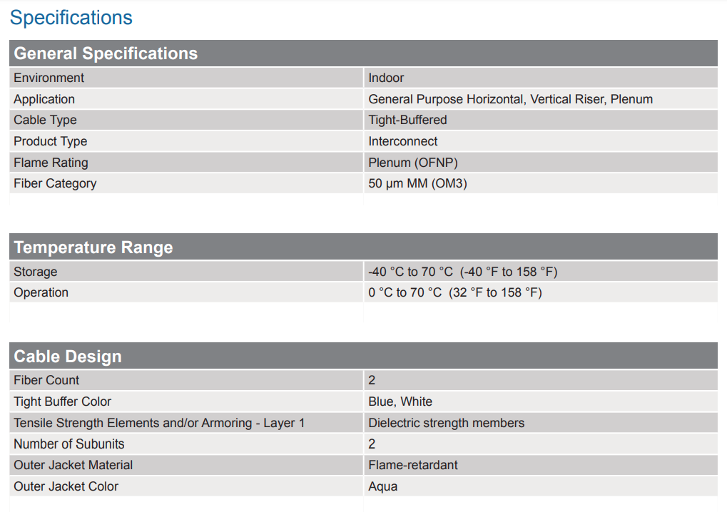 2-FIBER ZIPCORD CABLE PLENUM 2.0 MM OM3