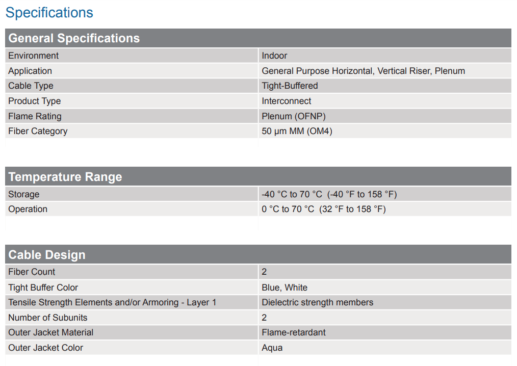 2-FIBER ZIPCORD CABLE PLENUM 2.0 MM OM4
