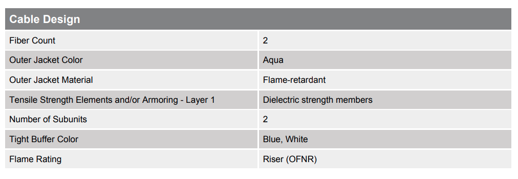 Zipcord Tight-Buffered Cable, Riser 2 F