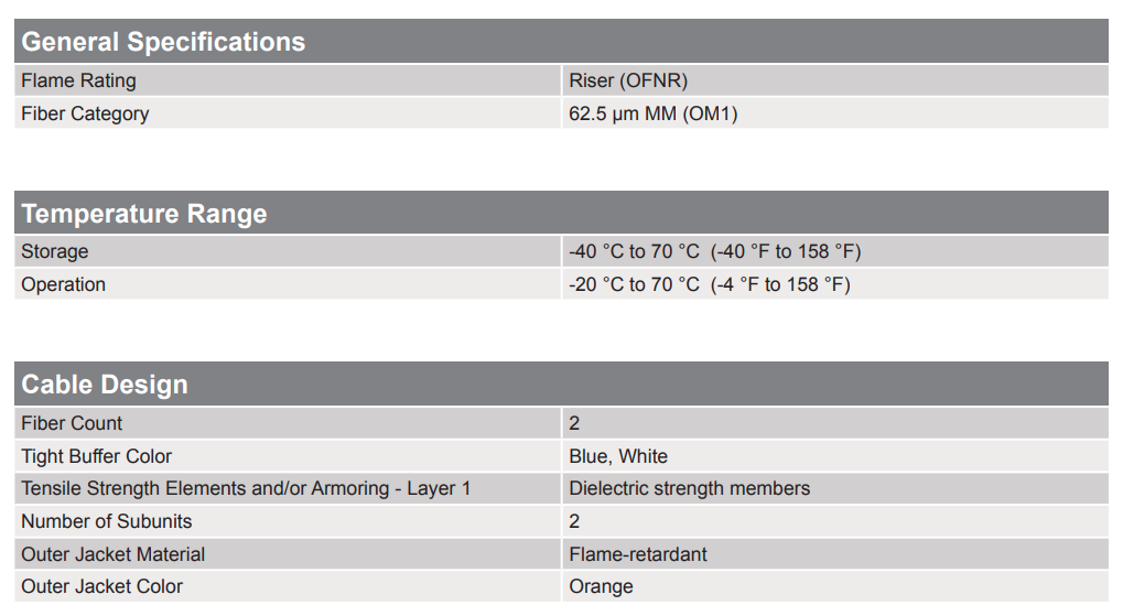 2-FIBER ZIPCORD CABLE RISER 2.8 MM OM1