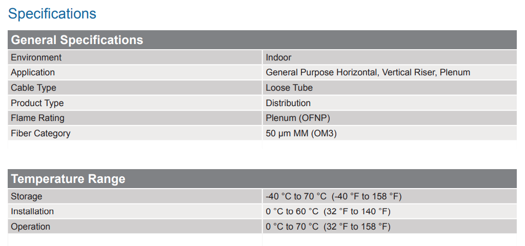 24-FIBER MIC® 250 DISTRIBUTION CABLE PLENUM OM3