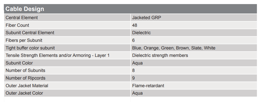 48-FIBER MIC® UNITIZED CABLE PLENUM OM3 6F/TUBE