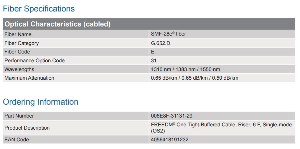 6-FIBER FREEDM® ONE CABLE RISER SMF-28E+®