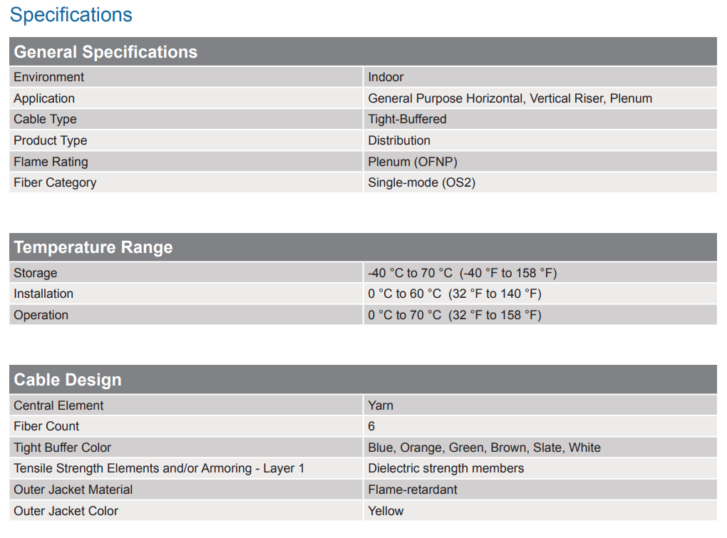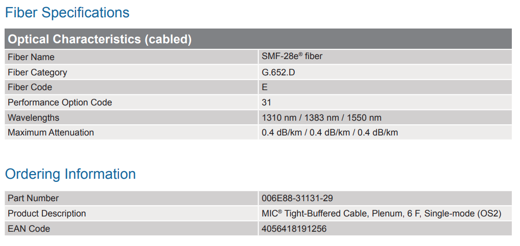 6-FIBER MIC® CABLE PLENUM SMF-28E+®