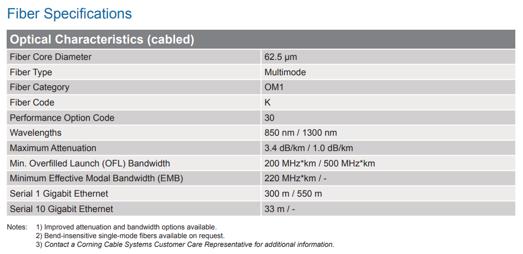 6 F, 62.5 µm multimode (OM1)