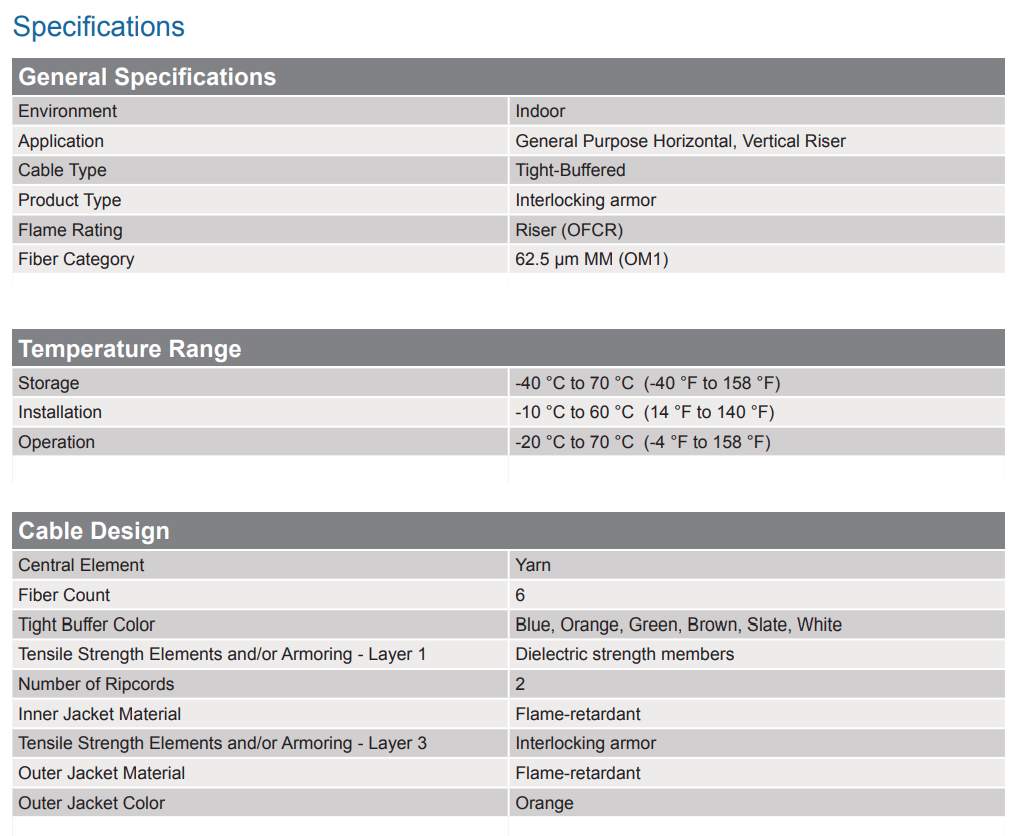 6-FIBER MIC® CABLE RISER OM1 INTERLOCKING ARMOR W/OUTER JKT