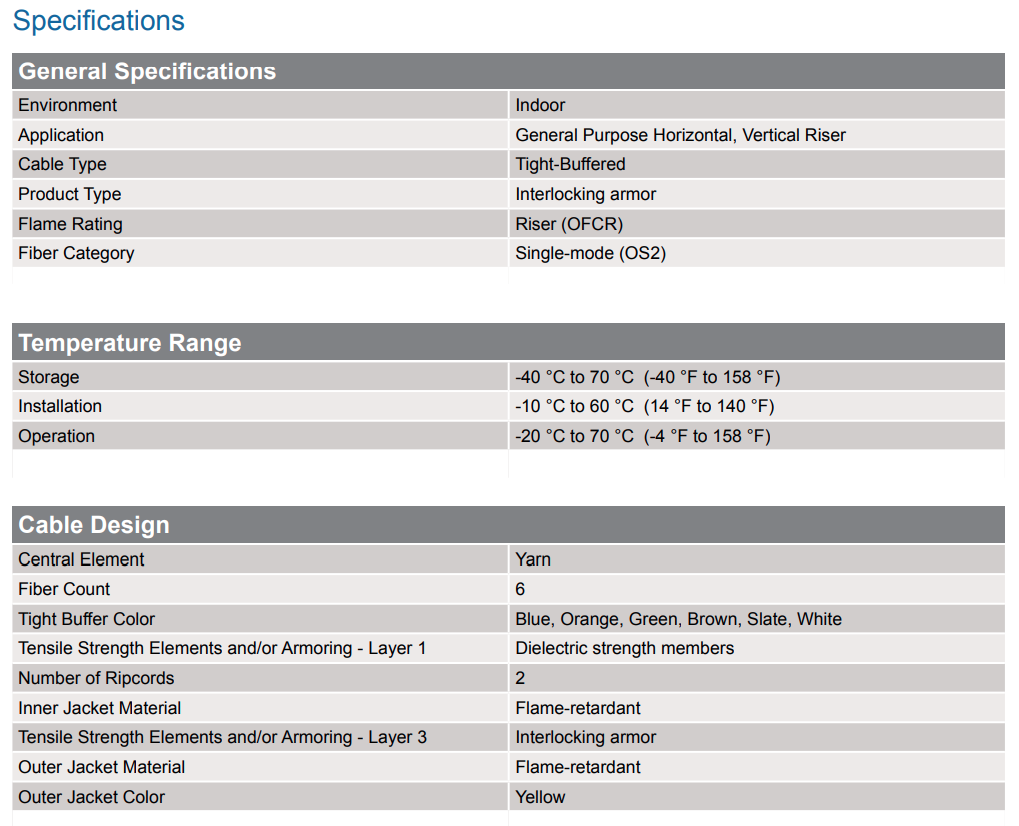 6-FIBER MIC® CABLE RISER SMF-28E+® INTERLOCKING ARMOR W/OUTER JKT