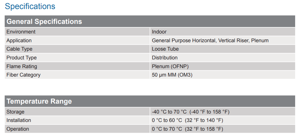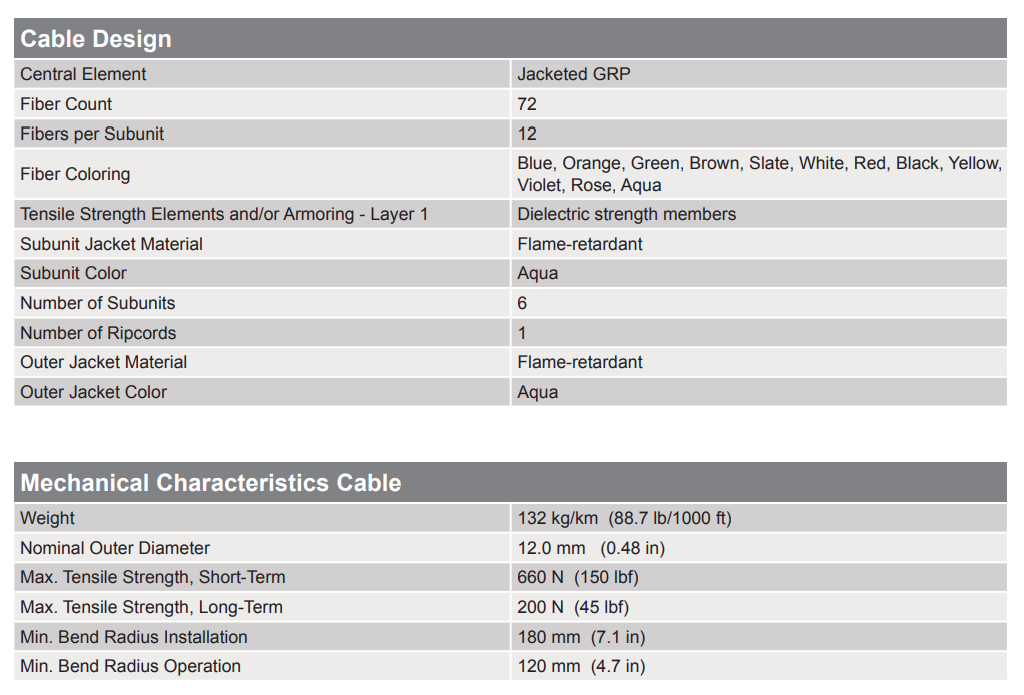 72-FIBER MIC® 250 DISTRIBUTION CABLE PLENUM OM3