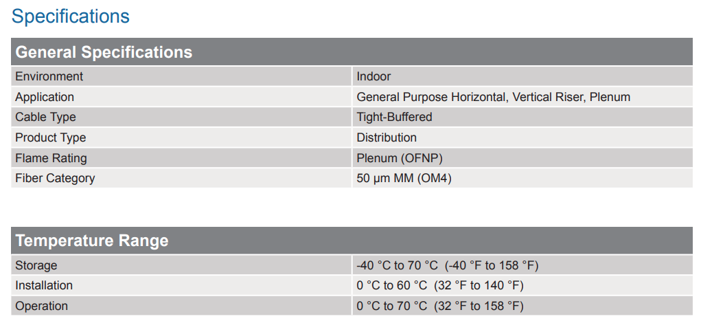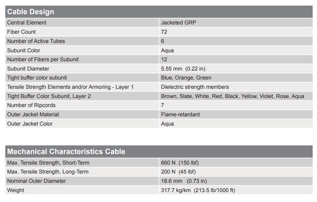 72-FIBER MIC® UNITIZED CABLE PLENUM OM4 12F/TUBE