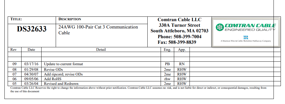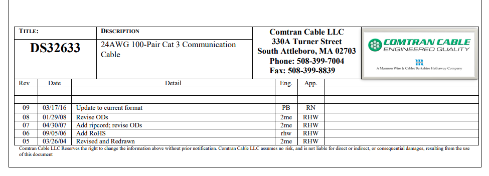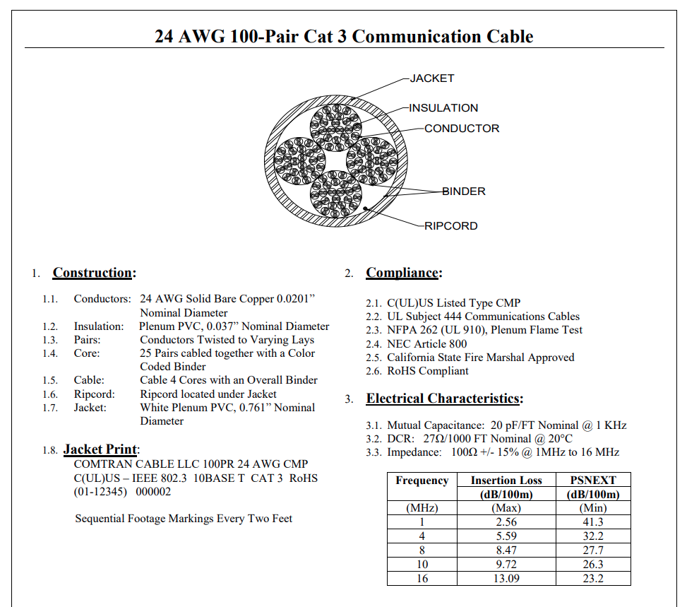 Comtran 32633 Category 3 White Plenum 1000 Ft. Box