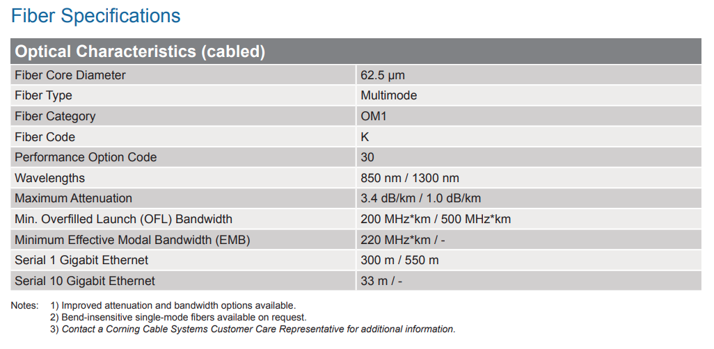 62.5 µm multimode (OM1), 2 m