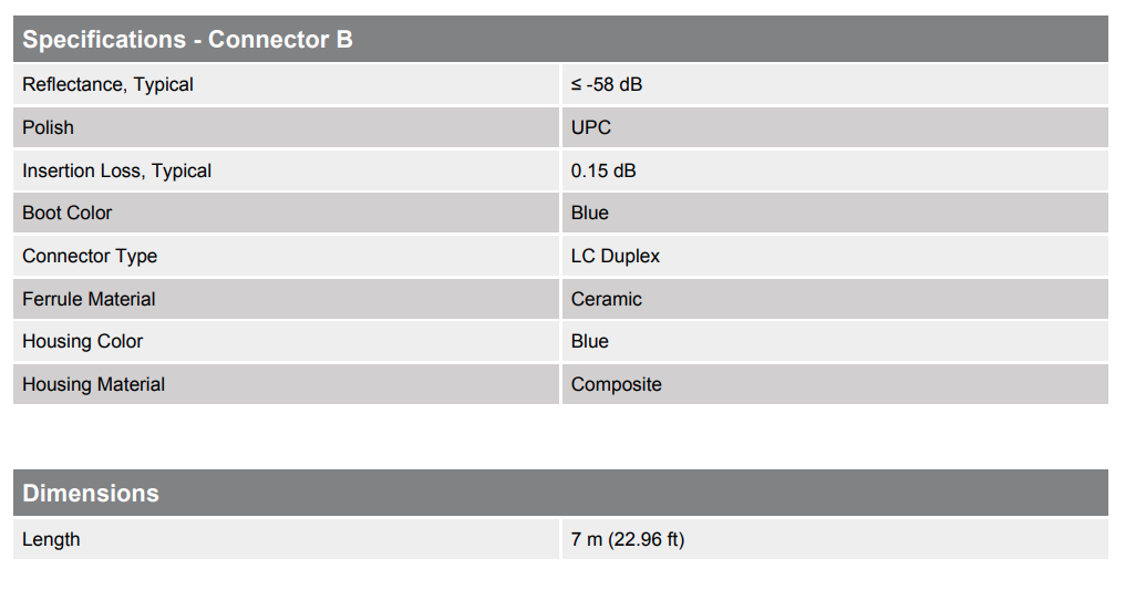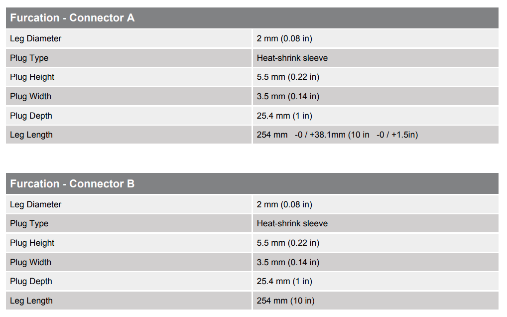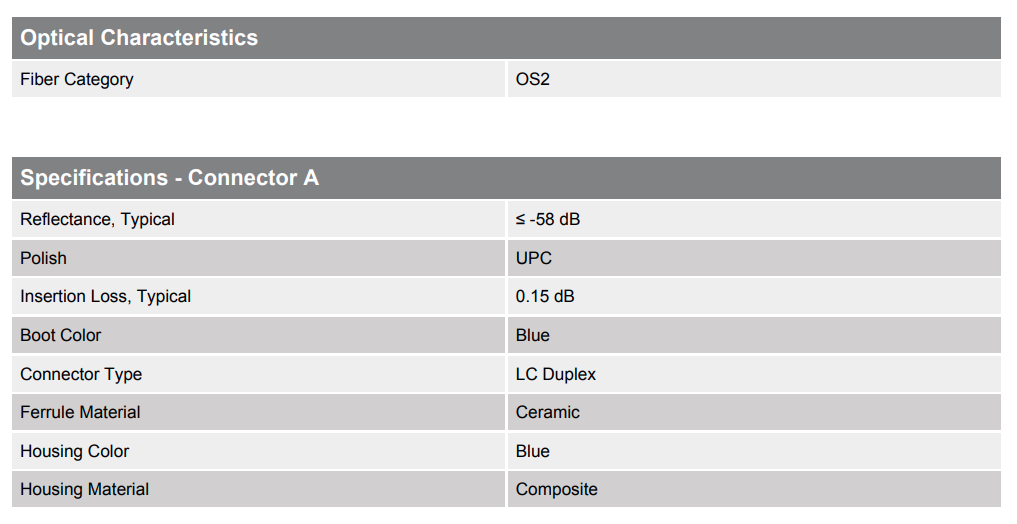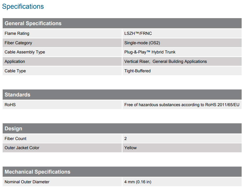 Two-fiber cable assemblies are available with a variety of connector and cable combinations. Options include LC, SC, and ST® compatible connectors. RoHS-compliant zipcord, DFX®, MIC®, Fan-out, and RIC cables are also available. Additional detailed furcation images are available in the cable assembly family specification sheet. Many of our fiber optic cable assemblies are highly configurable.