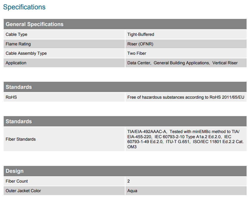 Reverse Polarity Uniboot Duplex Jumper Standard LC Uniboot MM / Standard LC Uniboot MM, OM3 50um, 2F, DFX 250 Riser, Standard Aqua Jacket 5 Meters