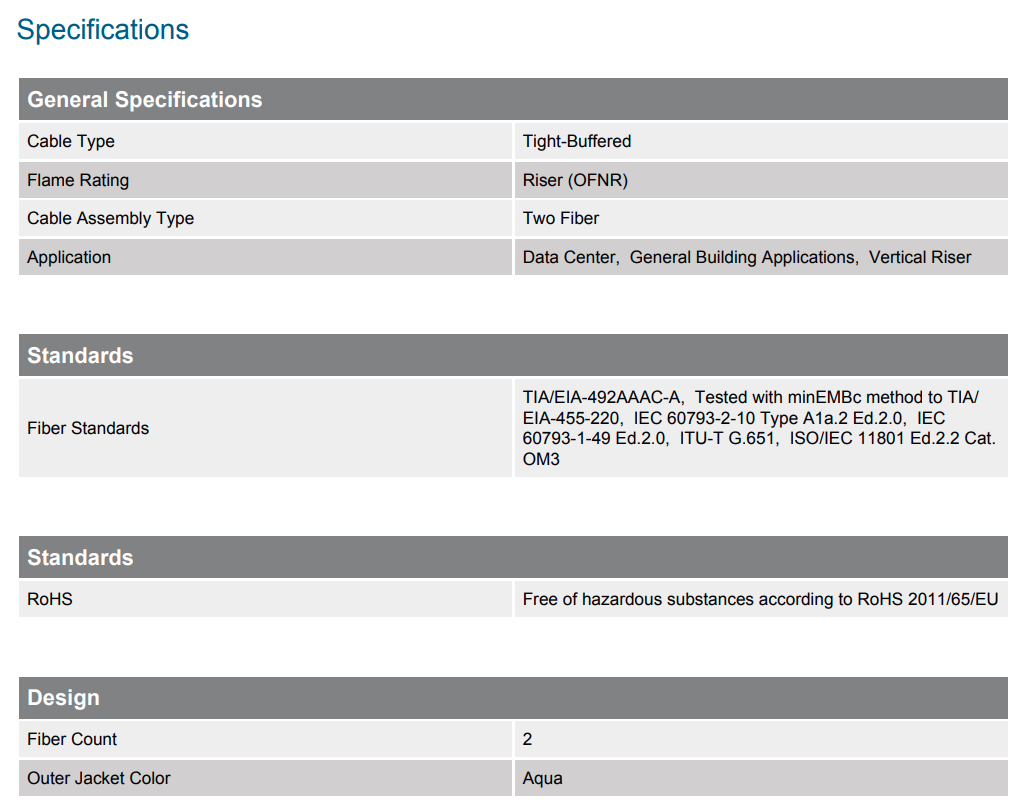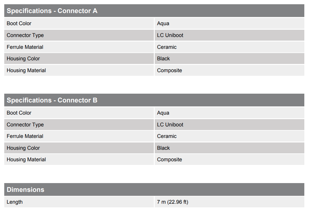 Reverse Polarity Uniboot Duplex Jumper Standard LC Uniboot MM / Standard LC Uniboot MM, OM4 50um, 2F, DFX 250 Riser, Standard Aqua Jacket 7 Meters