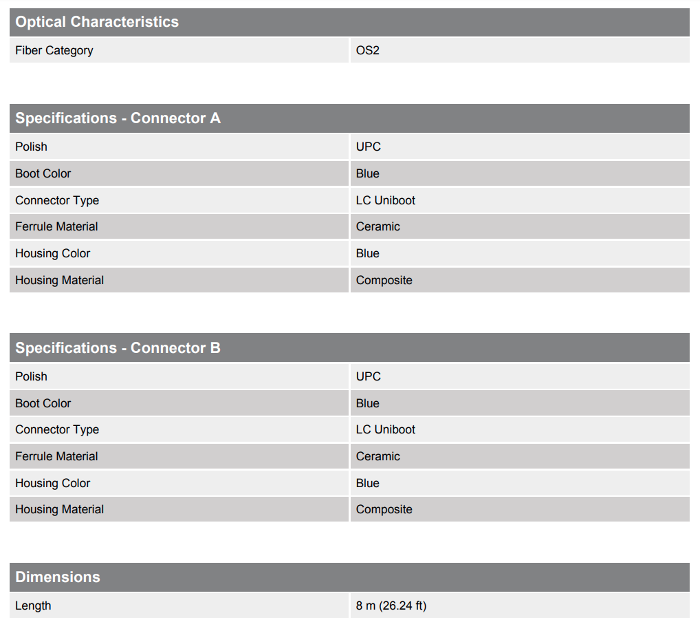 Reverse Polarity Uniboot Duplex Jumper Standard LCU Uniboot SM / Standard LCU Uniboot SM, SMF Ultra, 2F, DFX 250 Riser, Standard Yellow Jacket 8 Meters