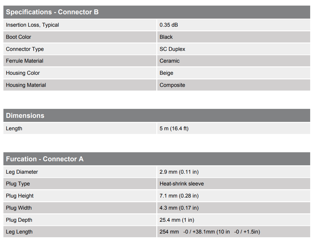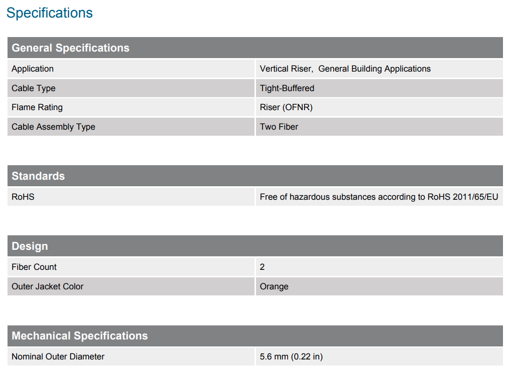 Two-fiber cable assemblies are offered with a variety of connector and cable combinations. Connector options include LC, SC, FC, ST® compatible, and MT-RJ. RoHS compliant Zipcord, DFX®, MIC®, Fan-out, and RIC cables are available.