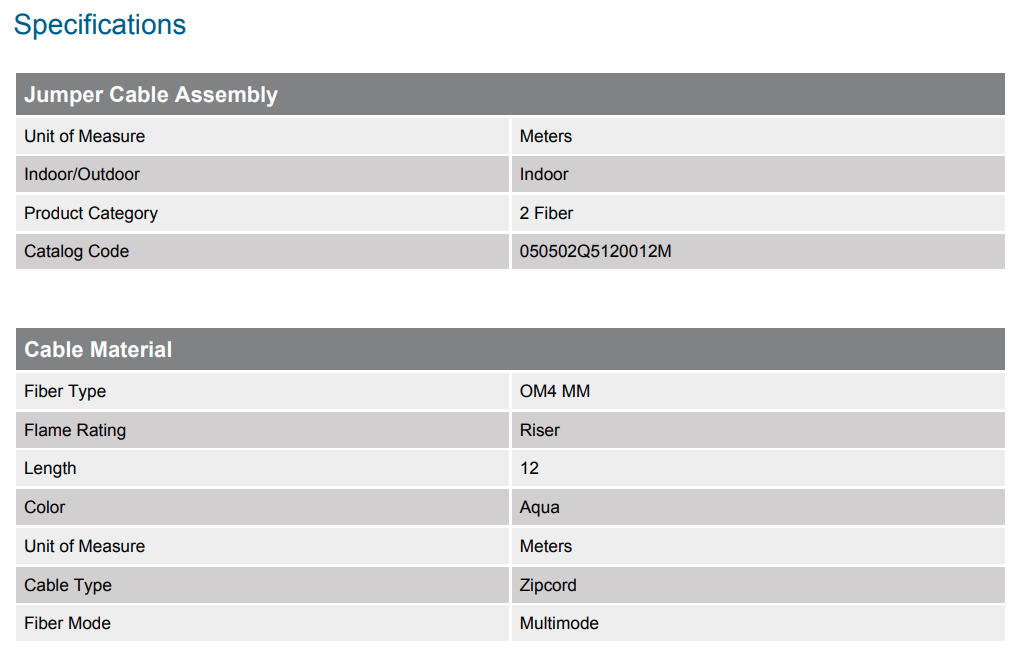 Standard LC Duplex MM / Standard LC Duplex MM, OM4 2F, Zipcord Riser, Standard Aqua Jacket 12M