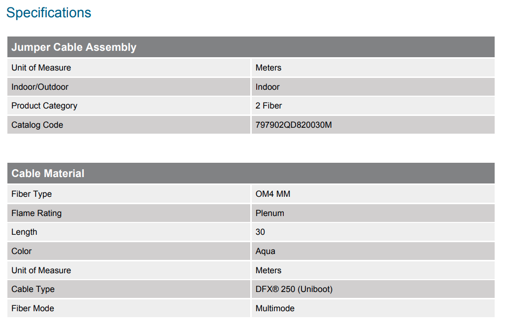 Standard LC Uniboot MM / Standard LC Uniboot MM, OM4 50um, 2F, DFX 250 Plenum, Standard Aqua Jacket 30 Meters