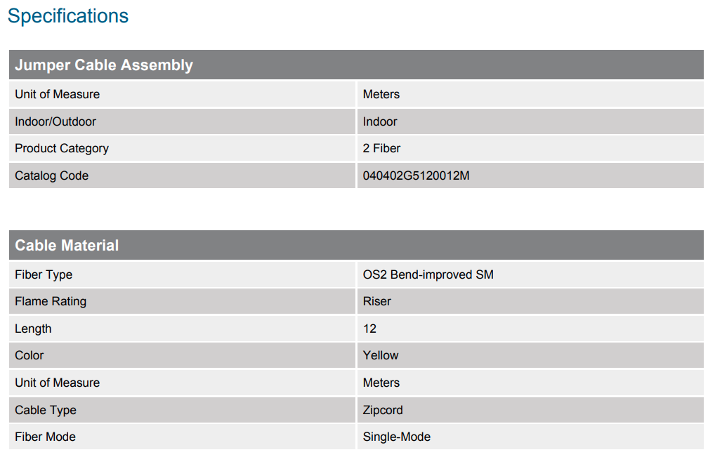Standard LCUPC Duplex SM / Standard LCUPC Duplex SM, SMF Ultra, 2F, Zipcord Riser, Standard Yellow Jacket 12M