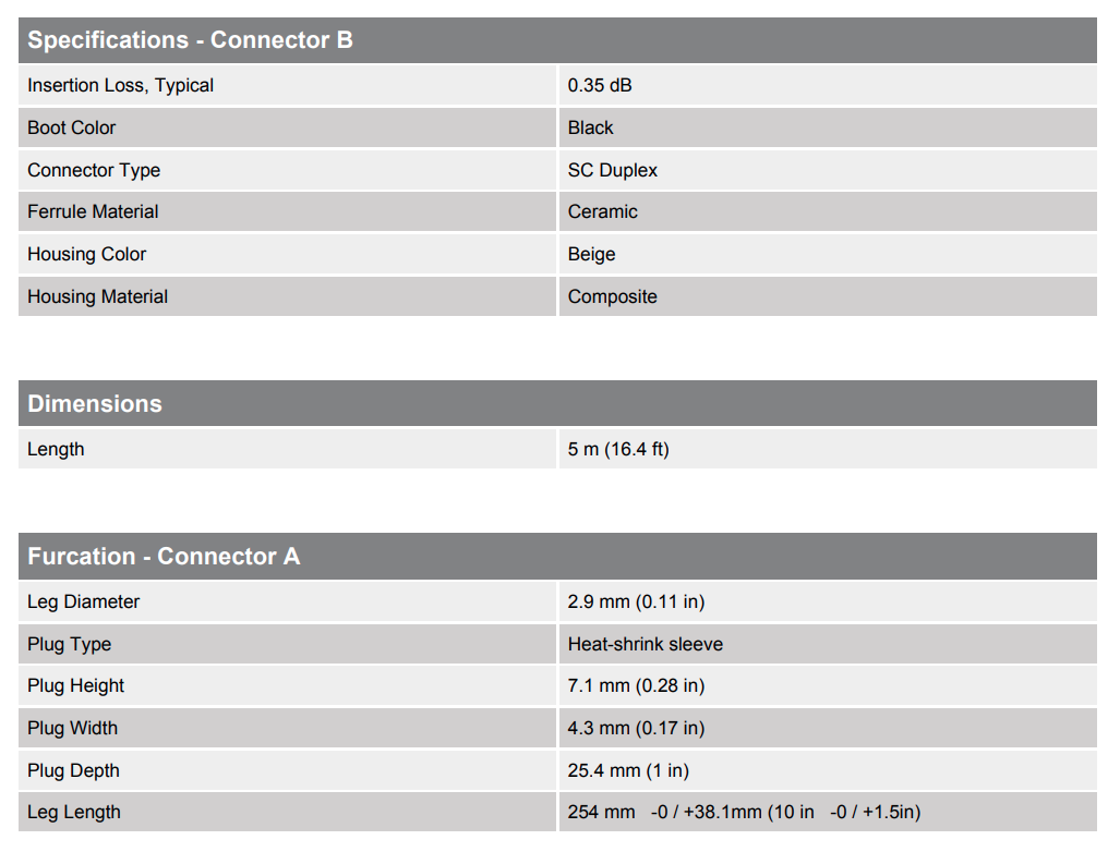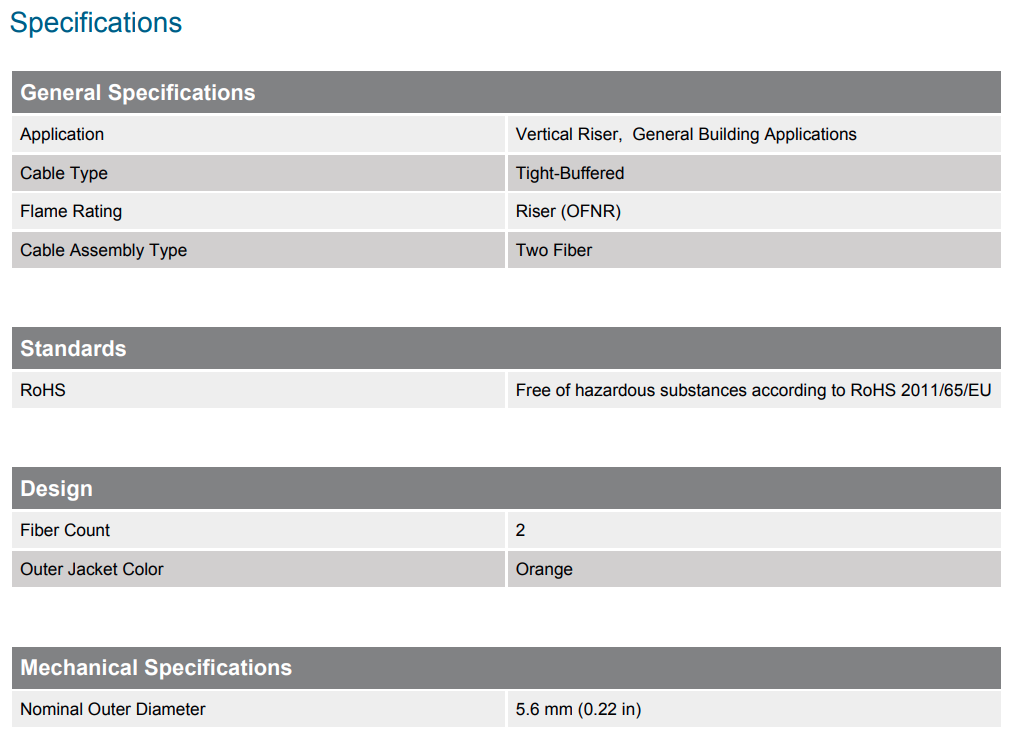 Two-fiber cable assemblies are offered with a variety of connector and cable combinations. Connector options include LC, SC, FC, ST® compatible, and MT-RJ. RoHS compliant Zipcord, DFX®, MIC®, Fan-out, and RIC cables are available.