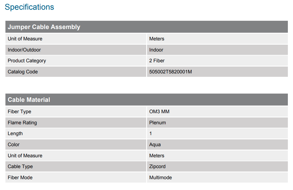 Zipcord Plenum, Standard Aqua Jacket 1 Meters