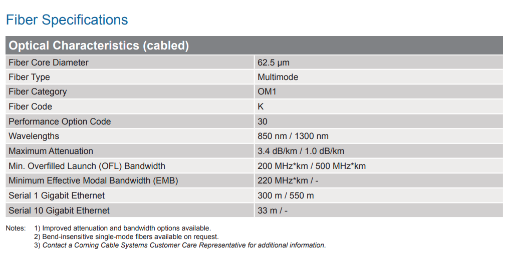 2.9 mm diameter, 62.5 µm multimode (OM1)